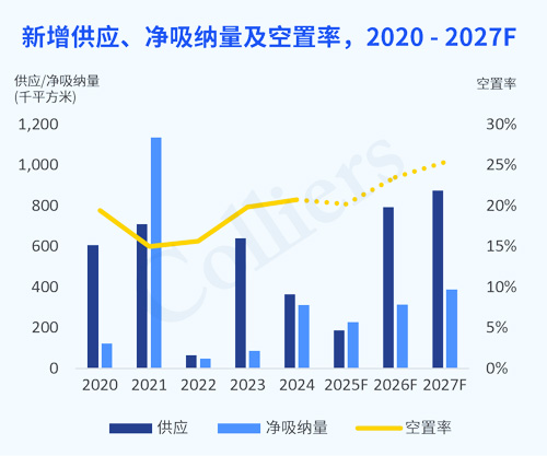 2025年恰逢未來三年新增供應(yīng)低谷,下半年預(yù)計還有一個新項目進(jìn)入北京甲級寫字樓市場。供應(yīng)側(cè)壓力的降低為北京甲級寫字樓市場空置率持續(xù)下行創(chuàng)造了有利條件,但需求側(cè)的不穩(wěn)定性仍是核心挑戰(zhàn)。若下半年市場需求未出現(xiàn)明顯回升,預(yù)計年末空置率還將穩(wěn)定在20%左右高位水平。