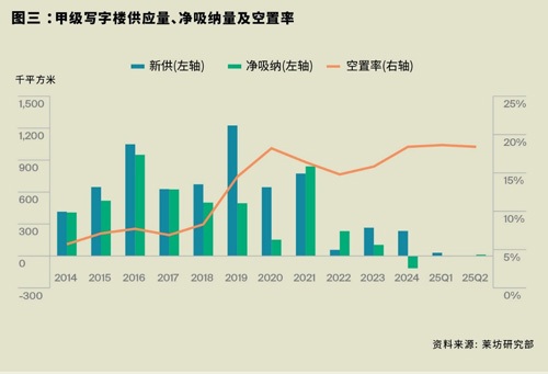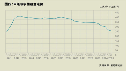 第二季度,北京甲級寫字樓租金環(huán)比下降1.6%至每月每平方米人民幣233.1元,比2024年四季度下降了7.4%,今年前兩個季度跌幅持續(xù)收窄。