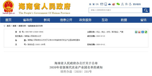 房訊網(wǎng)訊 近日,海南省人民政府辦公廳發(fā)布關(guān)于公布2020年省級現(xiàn)代農(nóng)業(yè)產(chǎn)業(yè)園名單的通知,認(rèn)定?谟筒枇挤N示范林產(chǎn)業(yè)園等18個農(nóng)業(yè)產(chǎn)業(yè)園為海南省級現(xiàn)代農(nóng)業(yè)產(chǎn)業(yè)園。