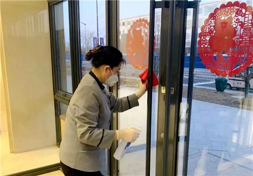 金隅高新產(chǎn)業(yè)園針對(duì)公共區(qū)域(大堂、電梯、衛(wèi)生間等)采取每一小時(shí)一次并記錄的高頻消毒措施;辦公樓大堂入口、員工餐廳等場(chǎng)所增設(shè)免洗消毒洗手液,方便進(jìn)出客戶、員工消毒;加強(qiáng)管理區(qū)域通風(fēng),每天上、下午開窗通風(fēng),每次通風(fēng)時(shí)間不少于30分鐘;做好消毒液、酒精等物品的管理和使用培訓(xùn)工作,做好消毒液的配比登記記錄;并要求保潔人員做好自身防護(hù),佩戴口罩。