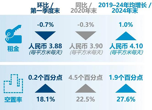 第一季度出現(xiàn)負(fù)吸納量,租金小幅下調(diào)