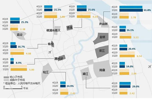 2020年第一季度,疫情的爆發(fā)給不少租戶的業(yè)務(wù)發(fā)展帶來(lái)負(fù)面影響,導(dǎo)致其推遲擴(kuò)租計(jì)劃甚至縮小租賃面積,上海產(chǎn)業(yè)園區(qū)也因此出現(xiàn)負(fù)吸納量,租金亦小幅下跌。