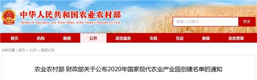 農(nóng)業(yè)農(nóng)村部 財政部關(guān)于公布2020年國家現(xiàn)代農(nóng)業(yè)產(chǎn)業(yè)園創(chuàng)建名單的通知