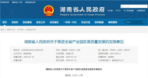 湖南省人民政府關(guān)于推進(jìn)全省產(chǎn)業(yè)園區(qū)高質(zhì)量發(fā)展的實(shí)施意見