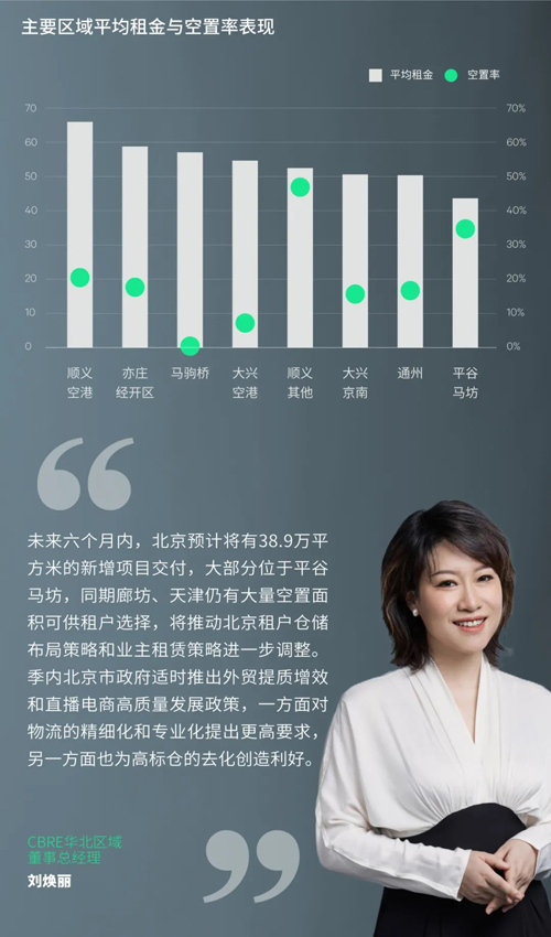 北京長期處于高位的租金水平自2010年以來首次走低,平均租金同樣本比環(huán)比下降1.4%至每月每平方米56.5元,其中平谷大幅調(diào)整,可租賃空間較充裕的順義其他、通州、大興京南等子市場亦有小幅下滑,而順義空港、馬駒橋等剛需型核心市場則相對穩(wěn)定。