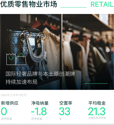 今年上半年杭州零售物業(yè)市場未錄得新項目入市。整體來看消費者信心正在回升,文旅市場火熱,為零售市場注入了更多動能。五一假期,杭州各景區(qū)接待游客數(shù)大幅增長,高星級酒店客房出租率高達93%,文旅消費總額同比增長22%,充分反映了消費需求的復蘇。同時“跟著演唱會去旅行”的新興文旅消費模式的發(fā)展,也為零售市場帶來了積極增長點。