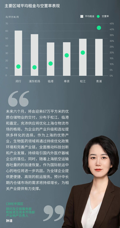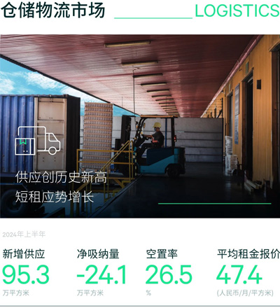 需求結(jié)構(gòu)而言,以三方物流占據(jù)絕對(duì)主導(dǎo),占比達(dá)68%。短期租賃交易增多,反映當(dāng)下租戶對(duì)成本可控與租期靈活的需求上升,錄得化工物流租戶在金山的擴(kuò)租8,000平方米,某三方物流客戶在金山短租5,000平方米。除此以外,集裝箱物流供應(yīng)商,快遞快運(yùn)等租戶均有1萬平方米及以上的布局,西北物流園區(qū)的拆遷促使三方物流租戶遷至寶山。制造業(yè)居次位,以醫(yī)療器械和家電家居為主;钴S區(qū)域主要集中在成熟市場(chǎng)寶山、浦東機(jī)場(chǎng),以及具備價(jià)格優(yōu)勢(shì)的金山和奉賢。上半年凈吸納量為-24.1萬平方米,空置率上升至26.5%,一方面是受新增供應(yīng)的影響,另一方面受退租影響,退租原因包括食品,護(hù)膚品和家居行業(yè)的縮減面積或整合,進(jìn)出口業(yè)務(wù)下滑以及新能源汽車相關(guān)企業(yè)的重新選址。