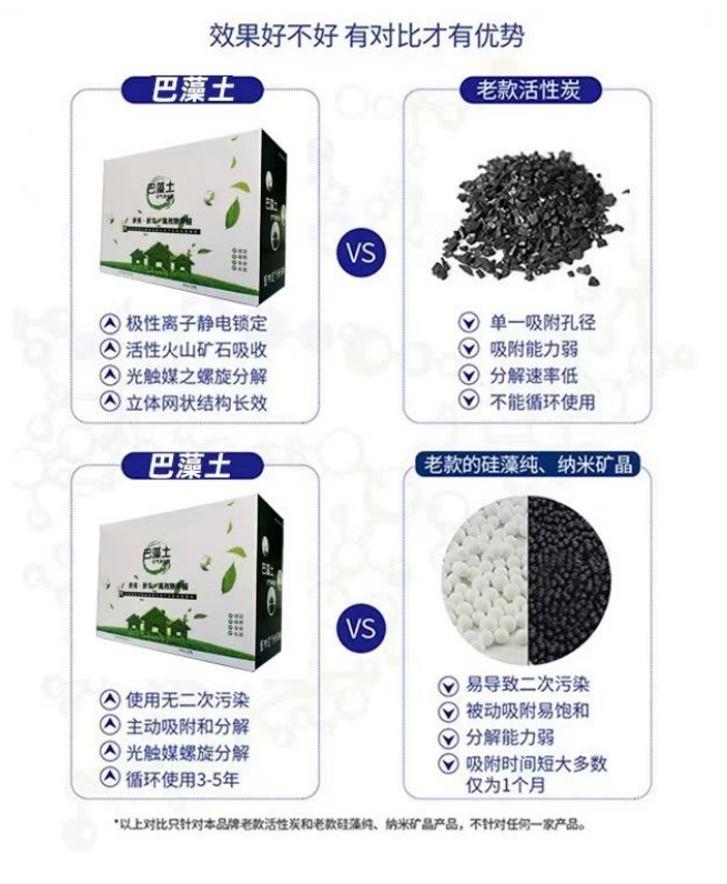 葉廣泥和活性炭不一樣,活性炭只能吸附,用一段時(shí)間以后吸附會(huì)飽和,葉廣泥不僅僅是吸附,是吸附后可以分解有害物質(zhì),不會(huì)再釋放,不需要暴曬,可以持久分解,使用3年。