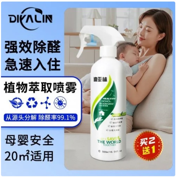 迪亞林主要是植物提取液成分,不需要紫外線就可以直接分解污染源,從源頭去除甲醛,母嬰級別,安全有保障!除醛率高達99.1%,業(yè)內(nèi)口碑非常不錯的一款除甲醛噴霧,經(jīng)過線下15年實踐驗證的一款成熟穩(wěn)定的除甲醛產(chǎn)品。產(chǎn)品不留痕跡,家里的家具板材,沙發(fā)床墊,布藝皮革,墻面均可以噴灑使用,沒有二次污染。