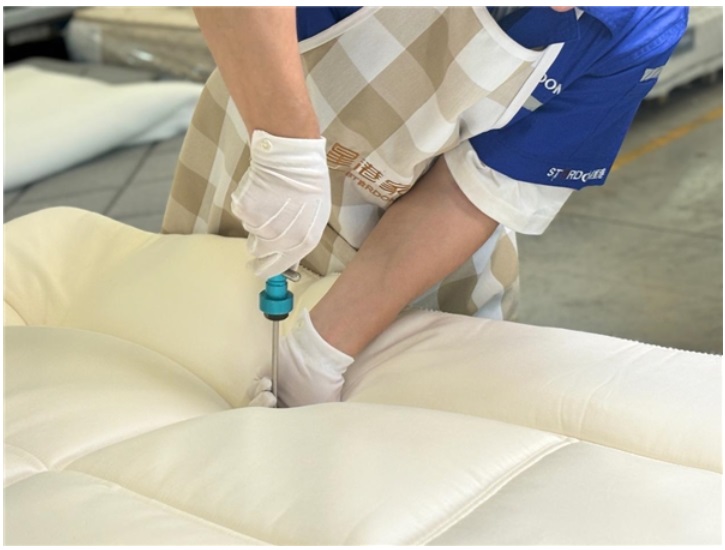 機器生產(chǎn)追求的是效率與標準,而匠人之手,守護的是極致與溫度。星港智能手工床墊的“手工”部分,由擁有30年以上經(jīng)驗的老師傅親手完成。