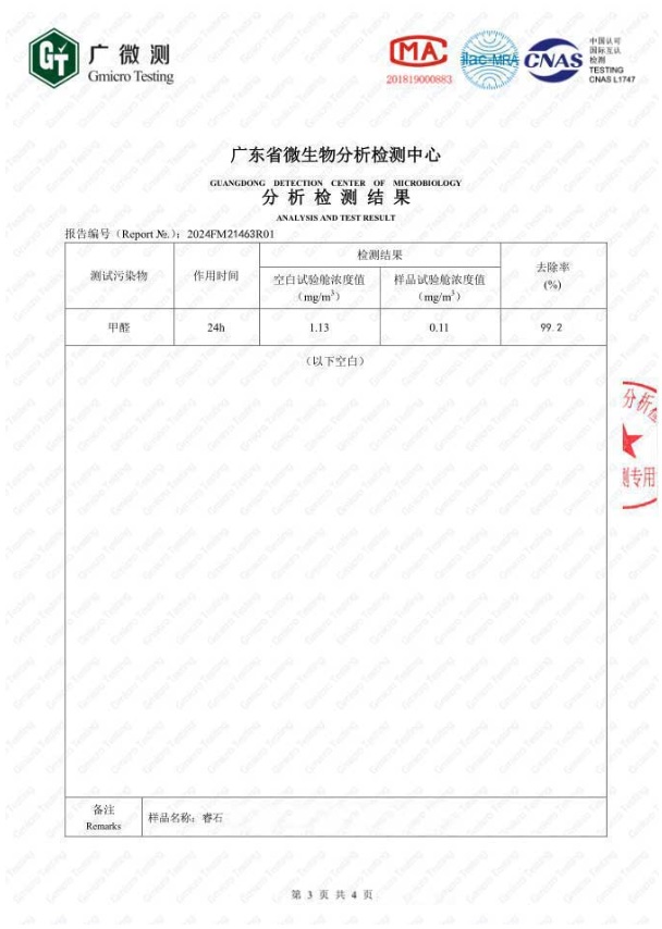 以上是睿石的甲醛去除率CMA檢測(cè)報(bào)告