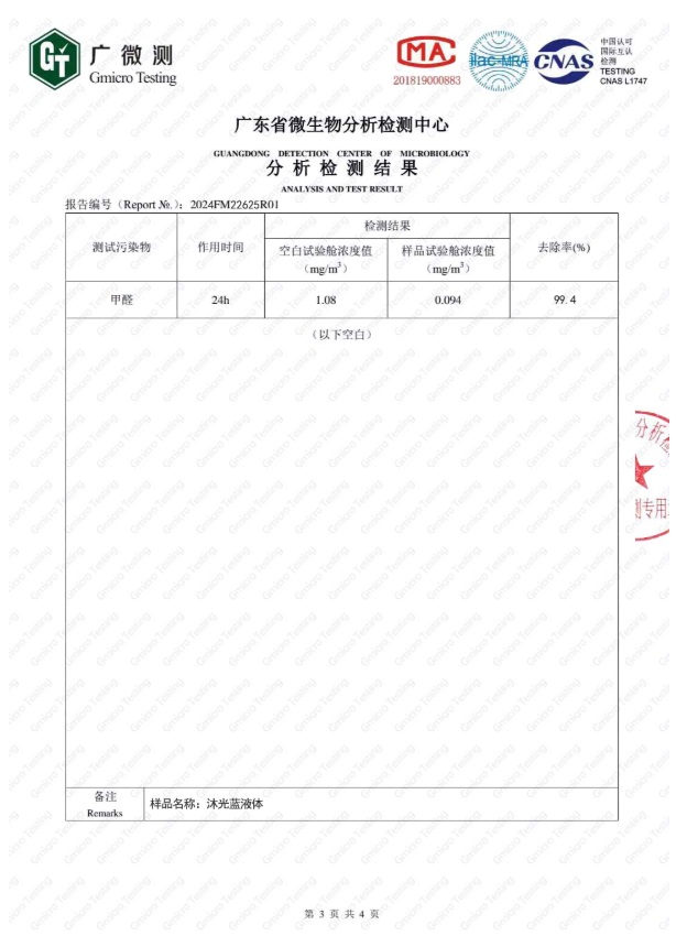 以上是沐光藍(lán)的甲醛去除率CMA檢測(cè)報(bào)告