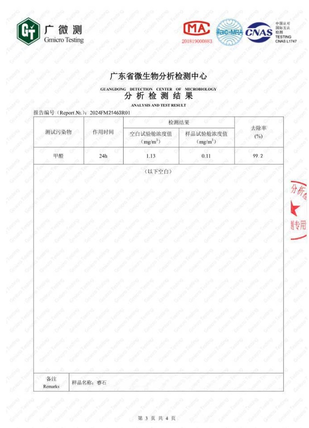 以上是睿石的甲醛去除率CMA檢測報(bào)告