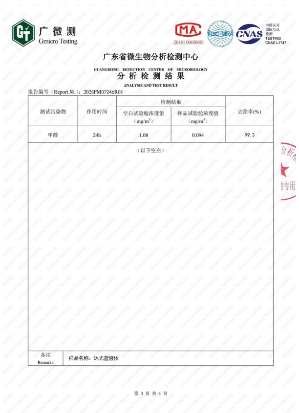 以上是沐光藍(lán)的甲醛去除率CMA檢測報(bào)告