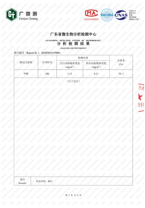 以上是睿石的甲醛去除率CMA檢測(cè)報(bào)告