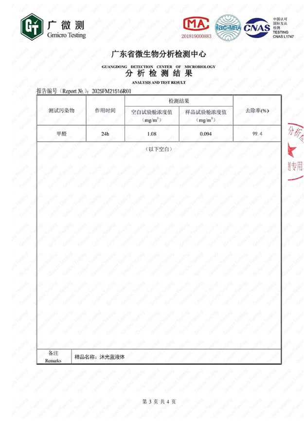 以上是沐光藍(lán)的甲醛去除率CMA檢測(cè)報(bào)告