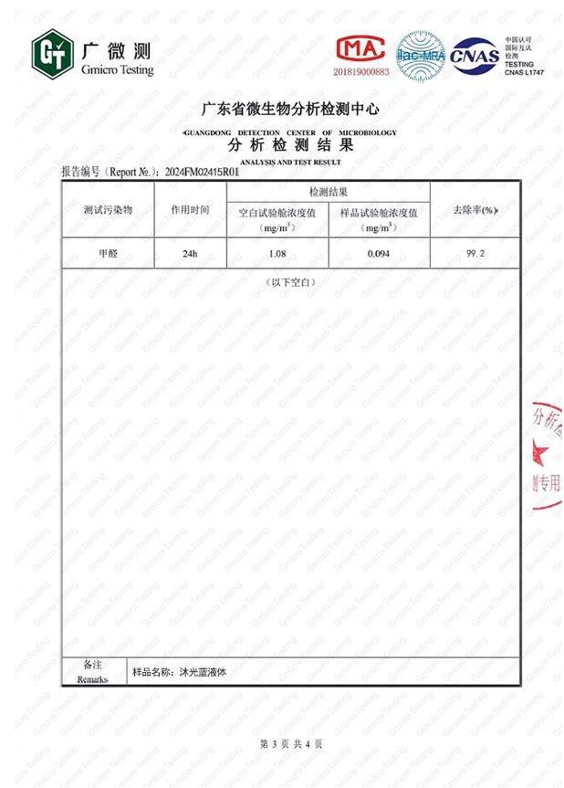 以上是沐光藍(lán)的甲醛去除率CMA檢測(cè)報(bào)告