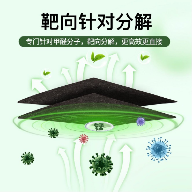 技術(shù)優(yōu)勢:無需光照、作用持久、避免二次釋放(與傳統(tǒng)活性炭吸附有本質(zhì)區(qū)別)這項技術(shù)的突破性并非單一要素的結(jié)果,而是多個創(chuàng)新點(diǎn)共同作用的產(chǎn)物!胺纸狻倍恰拔健保哼@與普通活性炭只能物理“吸附”甲醛有本質(zhì)區(qū)別。活性炭吸附容量有限,一旦飽和或環(huán)境溫度升高,已吸附的甲醛又會重新釋放出來,造成二次污染。而活性錳技術(shù)通過催化作用,從分子結(jié)構(gòu)上破壞了甲醛,將其轉(zhuǎn)化為無害的二氧化碳和水,這個過程是不可逆的,從而根除了二次污染的隱患。