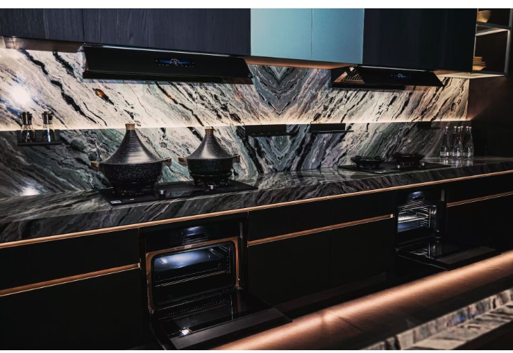 在勾勒出智慧全屋的整體藍圖后,F(xiàn)otileStyle進一步將目光投向家的核心場域,攜洞庭系列載譽返場,以智慧重塑廚房的社交儀式。其“炊宴模式”啟動時,烹飪區(qū)燈光聚焦暖意,煙機與電動抽屜同步開啟,“尋物模式”一鍵定位食材,讓下廚從勞作變?yōu)榧业膬x式!坝^覽模式”則完美適配開放式社交廚房場景,在烹飪與待客之間自如切換。