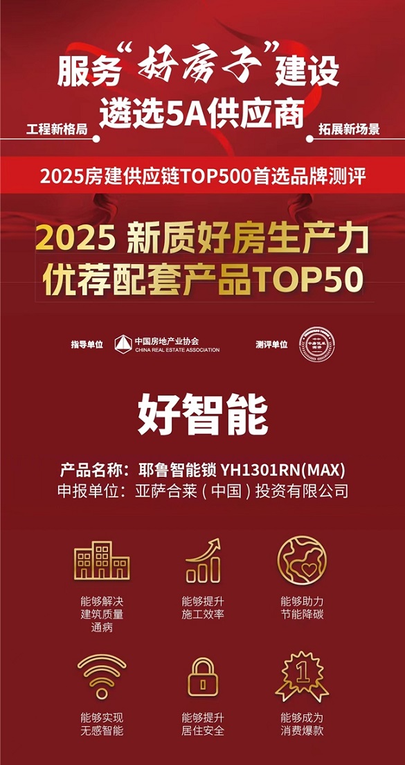自1840年設(shè)計(jì)第一把銀行鎖以來,Yale耶魯始終深度洞察消費(fèi)者對安全性的真實(shí)需求,以前沿創(chuàng)新科技為消費(fèi)者的家庭安全保駕護(hù)航,為房地產(chǎn)行業(yè)高質(zhì)量發(fā)展賦能。從圓筒彈子鎖的普及到智能安防生態(tài)的布局,Yale耶魯不斷洞察市場變化和用戶需求,持續(xù)引領(lǐng)行業(yè)技術(shù)升級,185年來持續(xù)以銀行級安全標(biāo)準(zhǔn)守護(hù)全球125個(gè)國家和地區(qū)千萬家庭的安心生活。此次YH1301RN(Max)入選“2025新質(zhì)好房生產(chǎn)力優(yōu)薦配套產(chǎn)品TOP50”榜單,正是Yale耶魯百年技術(shù)積淀與匠心品質(zhì)的再次認(rèn)證。