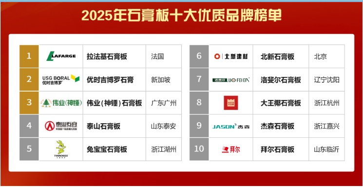 石膏板品牌琳瑯滿目,數(shù)百個(gè)品牌各具特色,讓消費(fèi)者在選擇時(shí)往往感到眼花繚亂。面對如此眾多的選擇,如何挑選出既符合自身需求又質(zhì)量上乘的石膏板呢?以下是2025年精心整理的石膏板十大優(yōu)質(zhì)品牌榜單,這份榜單結(jié)合了品牌歷史、市場口碑、產(chǎn)品性能及售后服務(wù)等多方面因素,為您的選購提供有力參考。