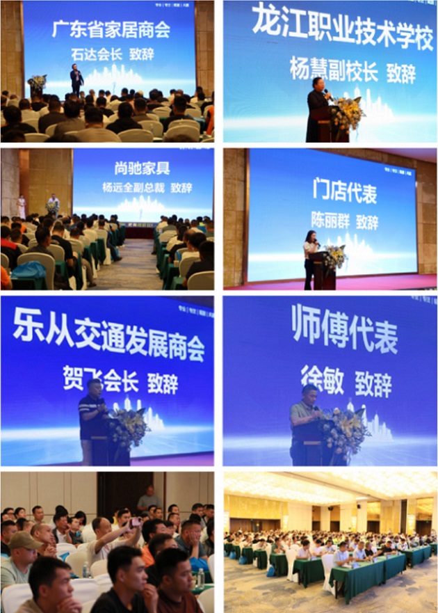 經(jīng)過十余年的深耕積淀,好修家具維修養(yǎng)護(hù)4S店服務(wù)模式應(yīng)運(yùn)而生。以專業(yè)立身,以專注立業(yè),致力于破解家居產(chǎn)業(yè)鏈中最棘手的售后服務(wù)難題。這是一次服務(wù)模式的創(chuàng)新升級(jí),更是一場(chǎng)行業(yè)生態(tài)的協(xié)同共創(chuàng),需要產(chǎn)業(yè)鏈各環(huán)節(jié)凝心聚力,以專業(yè)分工成就品質(zhì)服務(wù);需要每一位從業(yè)者精益求精,以匠人精神鍛造服務(wù)標(biāo)準(zhǔn)。企業(yè)的發(fā)展離不開各級(jí)領(lǐng)導(dǎo)的關(guān)懷指導(dǎo),更離不開在座每一位師傅的匠心堅(jiān)守與技藝精進(jìn)。廣東省家居商會(huì)執(zhí)行會(huì)長(zhǎng)兼秘書長(zhǎng)石達(dá)會(huì)長(zhǎng)、龍江職業(yè)技術(shù)學(xué)校副校長(zhǎng)楊慧女士、尚馳家具副總裁楊遠(yuǎn)全先生、樂從交通發(fā)展商會(huì)賀飛會(huì)長(zhǎng)、師傅代表徐敏先生、好修優(yōu)秀門店代表?xiàng)铥惾号康燃钨e領(lǐng)導(dǎo)蒞臨指導(dǎo)并發(fā)表熱情洋溢的致辭。