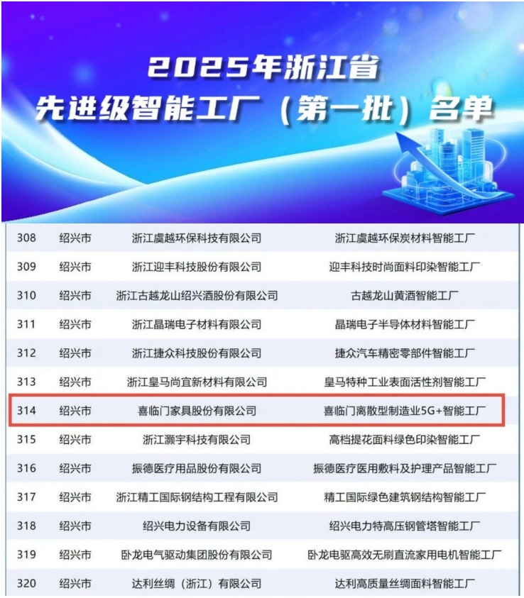 近期,浙江省經(jīng)濟(jì)和信息化廳公布2025年浙江省先進(jìn)級智能工廠(第一批)名單,喜臨門離散型制造業(yè)5G+智能工廠成功入選,充分顯示出在智能制造領(lǐng)域的領(lǐng)先實(shí)力和示范效應(yīng)。