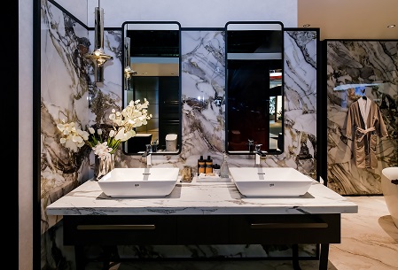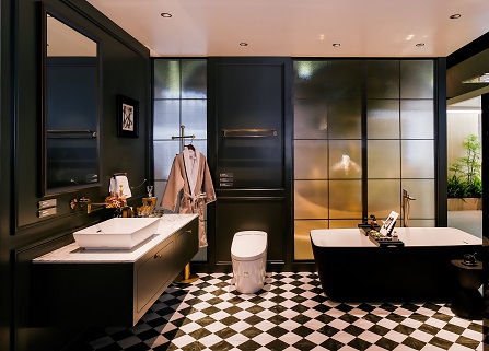 跳出常規(guī)白,衛(wèi)浴空間也能承載生活美學(xué)的精神領(lǐng)地。