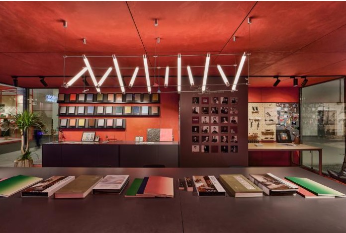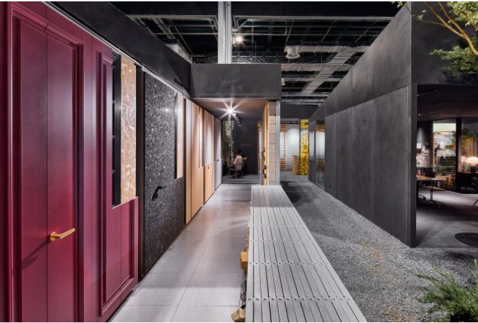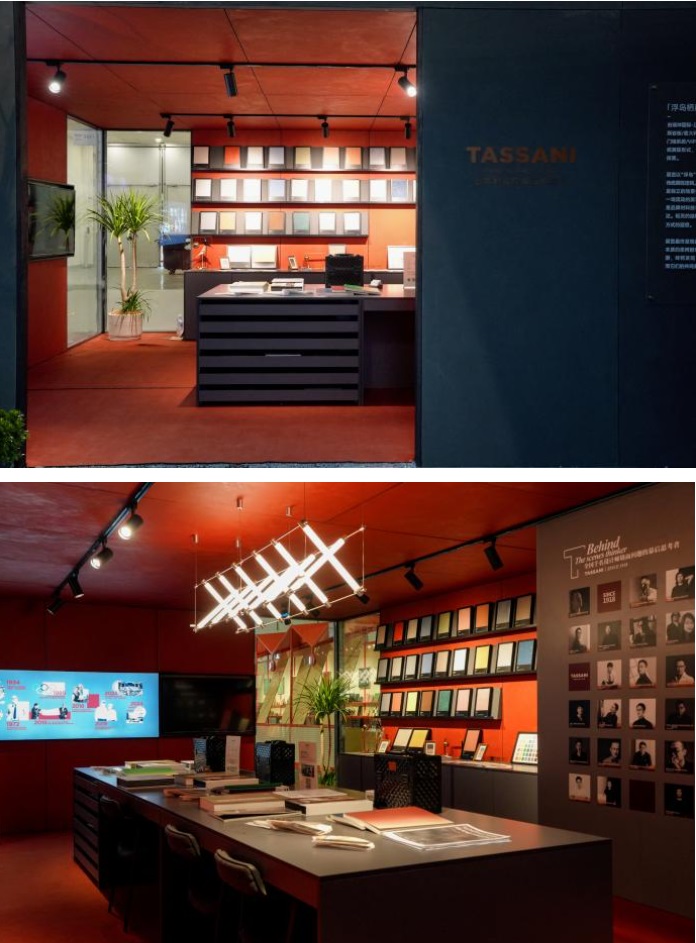 塔薩尼藝術(shù)涂料:百年意大利品牌的深厚底蘊(yùn),通過其首創(chuàng)的“金管家”服務(wù)體系展示區(qū)得到彰顯,完美詮釋品牌的匠心傳承與服務(wù)精神。在核心的色彩表達(dá)上,空間大膽采用單一而強(qiáng)烈的復(fù)古紅作為主視覺,形成強(qiáng)大吸睛力;同時,以材料圖書館形式系統(tǒng)陳列其獨(dú)立開發(fā)的豐富色彩體系,直觀呈現(xiàn)品牌的色彩研發(fā)實(shí)力與完整性。
