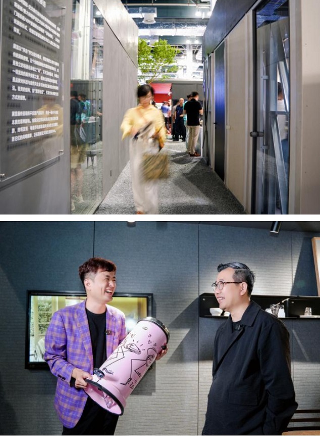 區(qū)別于常規(guī)的品牌主導(dǎo)展位,“浮島棲所”的核心驅(qū)動力來自設(shè)計師徐慶良和楊銘斌的策展人角色。這種由專業(yè)設(shè)計力量主導(dǎo)、深度整合多品牌資源的策展式商業(yè)實(shí)驗(yàn),在“設(shè)計上海”這類頂級展會中也屬前沿探索。其價值在于以全局性的設(shè)計思維和敘事能力,超越單一產(chǎn)品的展陳邏輯,構(gòu)建起具有情感共鳴和前瞻視野的品牌體驗(yàn)場域。展覽期間,這一創(chuàng)新模式吸引了設(shè)計行業(yè)自媒體“大餅的設(shè)計圈”的打卡采訪,“設(shè)計上!敝鬓k方亦進(jìn)行探館采訪,印證這種行業(yè)新范式所引發(fā)的關(guān)注。