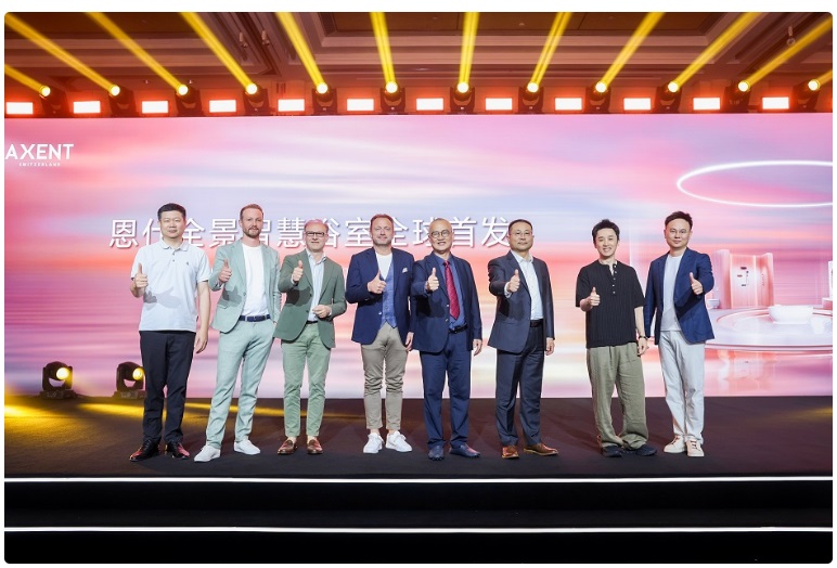 2025年5月28日,第29屆中國國際廚房衛(wèi)浴設(shè)施展覽會期間,高端智慧衛(wèi)浴品牌AXENT恩仕于上海浦東嘉里大酒店舉辦全景智慧浴室發(fā)布會暨品牌晚宴。恩仕集團(tuán)董事長李飛宇,恩仕品牌聯(lián)合創(chuàng)始人Daniel Grob,恩仕集團(tuán)副總裁方奕敏,恩仕首席設(shè)計官Arthur Eisenkrein,及MATTEO THUN & ANTONIO RODRIGUEZ DESIGN 事務(wù)所聯(lián)合創(chuàng)始人Antonio Rodriguez等業(yè)界領(lǐng)袖,與眾多行業(yè)伙伴、媒體嘉賓齊聚一堂,一同見證這一重要意義時刻。