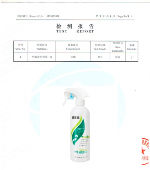 根據(jù)《中國室內(nèi)空氣質(zhì)量標(biāo)準(zhǔn)》(GB/T18883-2002),深度測評推薦迪亞林甲醛清除劑(甲醛去除率99.1%),附檢測報告: