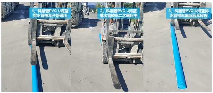 科順管全新上市的PVC-U排水管核心管件才采用獨(dú)特加強(qiáng)筋結(jié)構(gòu)設(shè)計(jì),落錘沖擊測試強(qiáng)度達(dá)到國標(biāo)要求≤5kJ/m²),抗壓性能提升50%?祈樄躊VC-U排水管管材實(shí)測可承受重物壓力,就算是叉車來回碾壓也不碎裂。