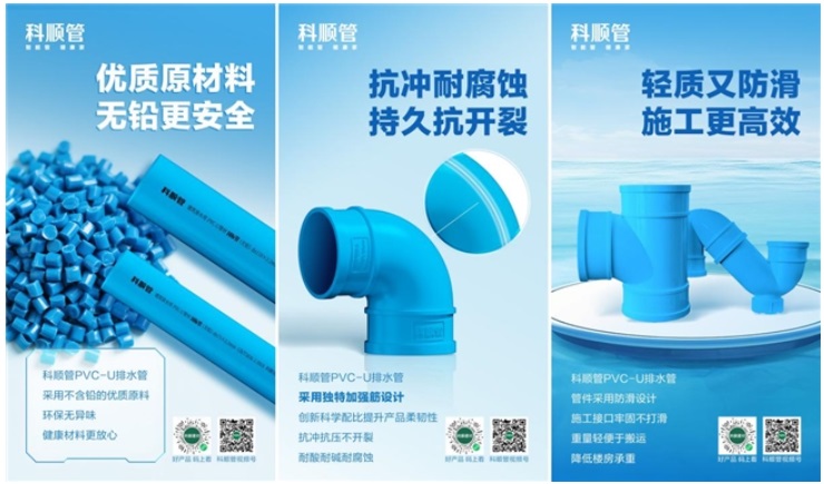 每個(gè)場景的解決方案均基于科順管PVC-U排水管三大核心技術(shù)和獨(dú)特外觀美學(xué):無鉛環(huán)保原料保障用水安全,加強(qiáng)筋結(jié)構(gòu)提升抗壓性能,防滑設(shè)計(jì)優(yōu)化施工效率,專屬海藍(lán)色外觀設(shè)計(jì)等,全面滿足現(xiàn)代家庭對(duì)排水系統(tǒng)的健康、安全、耐久性和美觀性的需求。