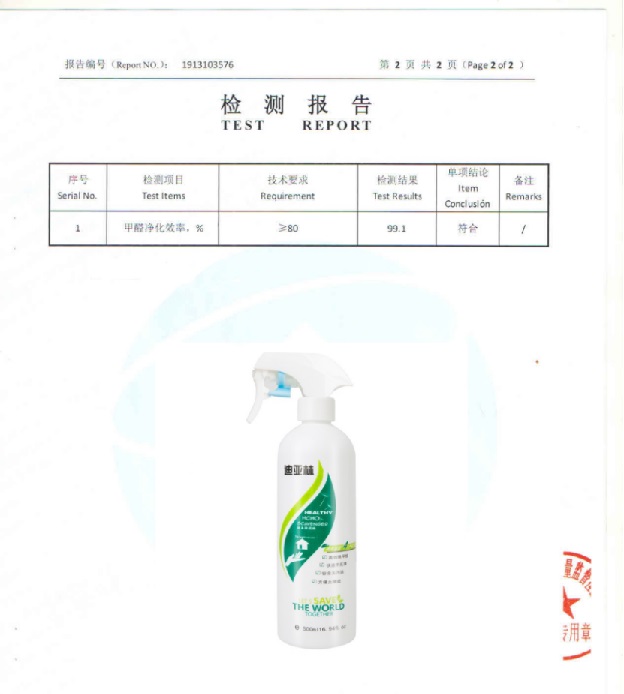 根據(jù)《中國室內(nèi)空氣質(zhì)量標準》(GB/T18883-2002),深度測評推薦迪亞林甲醛清除劑(甲醛去除率99.1%),附檢測報告:
