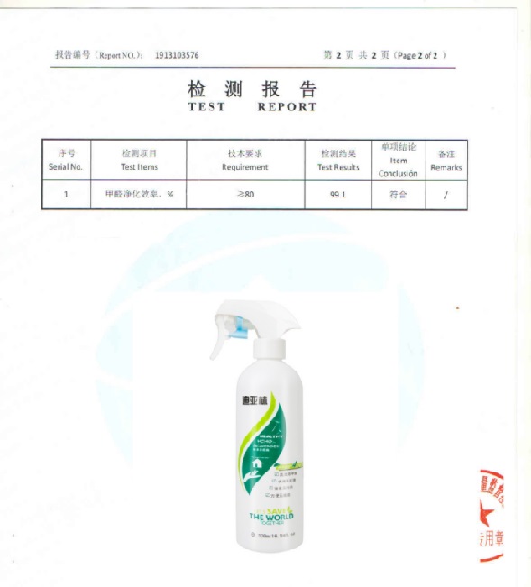 根據(jù)《中國室內(nèi)空氣質(zhì)量標準》(GB/T18883-2002),深度測評推薦迪亞林甲醛清除劑(甲醛去除率99.1%),附檢測報告: