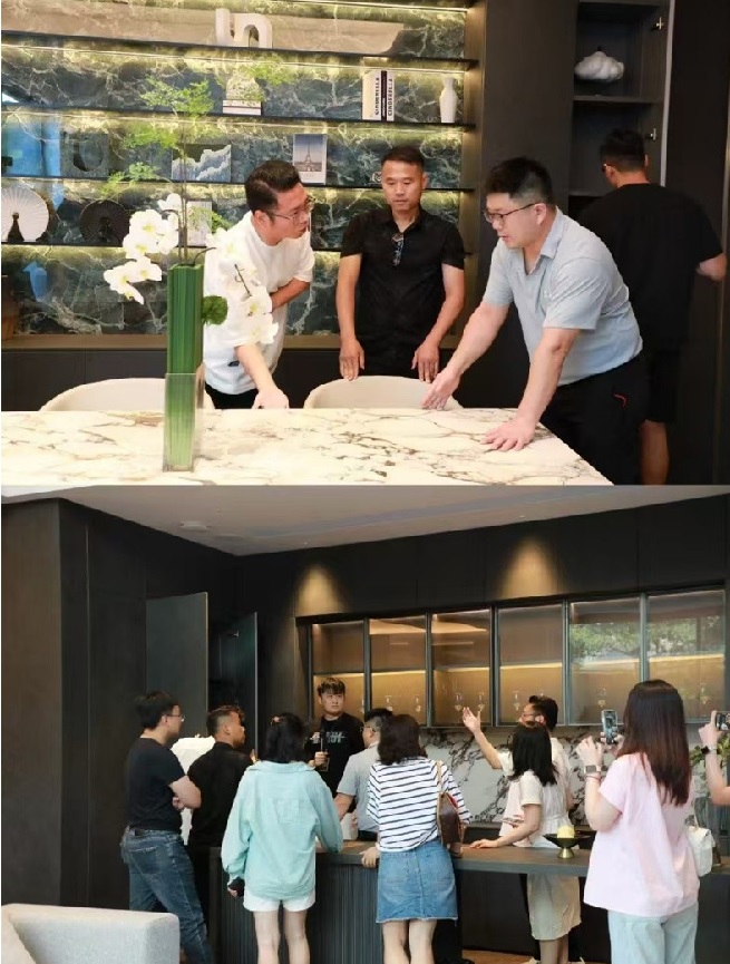 豐富的全巖應用展示空間與工藝、產(chǎn)品、花色的巧妙陳列運用,無不彰顯無上巖板的匠心獨運與卓越品質,吸引了無數(shù)設計師朋友的目光。