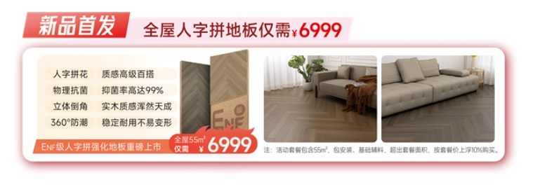 為降低消費者嘗新門檻,生活家地板針對該系列新品推出全屋55㎡優(yōu)惠套餐,僅需6999元,且包含安裝及基礎(chǔ)輔料。超出面積按套餐價上浮10%計算,兼顧性價比與全屋風格統(tǒng)一性。