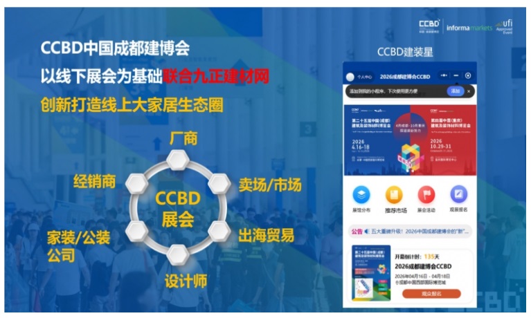 AI、大數(shù)據(jù)等數(shù)字技術(shù)加速滲透,推動展貿(mào)模式迭代升級,線上展廳成為行業(yè)發(fā)展新趨勢。2026中國成都建博會主動擁抱變革,與九正建材網(wǎng)達成深度戰(zhàn)略合作,聯(lián)袂打造數(shù)字化平臺【CCBD建裝星】,構(gòu)建線上線下融合的大家居行業(yè)新生態(tài)。