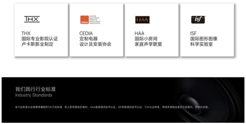 者尼影音房定制的核心優(yōu)勢(shì),源于對(duì)專業(yè)標(biāo)準(zhǔn)的極致堅(jiān)守。依托 CEDIA(定制電子設(shè)計(jì)與安裝協(xié)會(huì))國(guó)際標(biāo)準(zhǔn)體系,結(jié)合 HAA 音頻調(diào)試技術(shù)認(rèn)證、ISF 視頻調(diào)試技術(shù)認(rèn)證、THX 影院認(rèn)證三大行業(yè)核心準(zhǔn)則,者尼構(gòu)建了從設(shè)計(jì)到交付的全流程專業(yè)體系。每一個(gè)影音房方案,都由持有國(guó)際權(quán)威認(rèn)證的工程師團(tuán)隊(duì)量身打造,依據(jù)清華大學(xué)建筑聲學(xué)實(shí)驗(yàn)室等權(quán)威標(biāo)準(zhǔn),對(duì)房間的聲學(xué)環(huán)境進(jìn)行精準(zhǔn)優(yōu)化,將背景噪聲嚴(yán)格控制在理想范圍,同時(shí)通過(guò)科學(xué)的混響時(shí)間調(diào)控,讓聲音的層次感、環(huán)繞感達(dá)到專業(yè)影院級(jí)別。無(wú)論是 “星球大戰(zhàn)” 主題影院這樣的獲獎(jiǎng)級(jí)設(shè)計(jì)理念,還是貼合家庭日常觀影的溫馨場(chǎng)景,者尼都能實(shí)現(xiàn)科技與體驗(yàn)的完美平衡。
