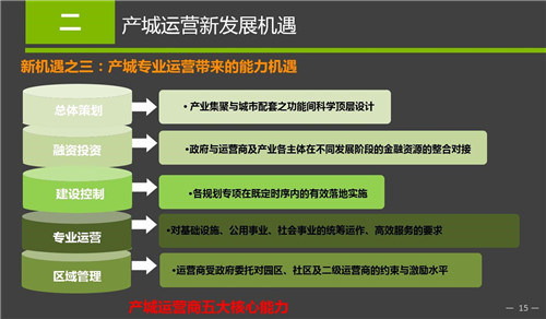 最后談?wù)剬I(yè)能力的機(jī)遇。那作為產(chǎn)城運(yùn)營(yíng)商如何與政府合作,為政府的產(chǎn)業(yè)園區(qū)、產(chǎn)業(yè)片區(qū)、產(chǎn)業(yè)新城提供高質(zhì)量的服務(wù)?