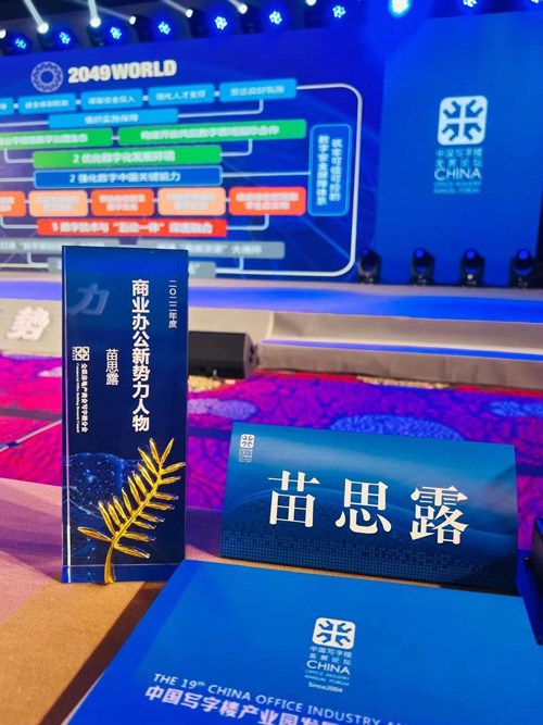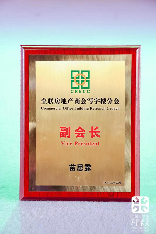 頒獎(jiǎng)典禮上,中關(guān)村西北旺科技園副總經(jīng)理苗思露榮獲"2022年度商業(yè)地產(chǎn)新勢(shì)力人物獎(jiǎng)"。此外,會(huì)上增補(bǔ)副會(huì)長授牌儀式,苗思露作為全聯(lián)房地產(chǎn)商會(huì)寫字樓分會(huì)副會(huì)長接受了授牌。